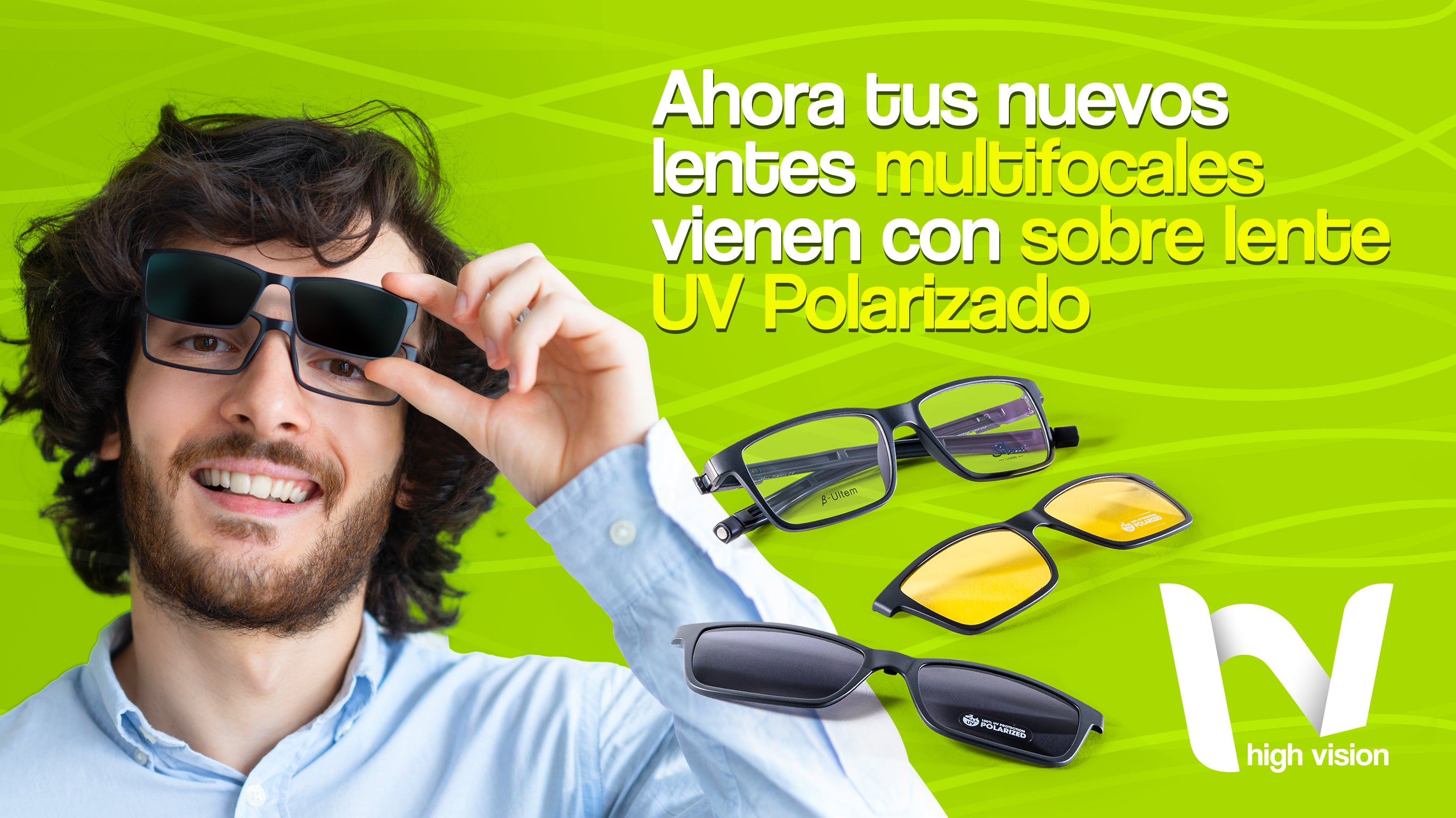 En High Vision ofrecemos lentes Clip on con micas polarizadas, una Gris para protegerte del Sol y otra Ambar para ayudarte con los deslumbramientos producidos por luces, ideales para la conducción o si trabajas expuesto a iluminación artificial.